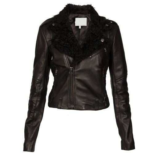 Specially designed this leather jacket is made from lamb leather and this leather jacket is paneled at sleeves and quilted with asymmetrical zipper front closure. This leather jacket has two front zipper fastenings and two side zipper pockets at chest.
