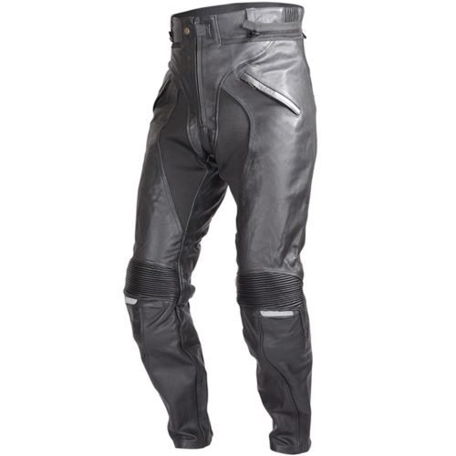 The jean styling combines with stretch panels in all the right places, like the knees and the back of the waist, so you feel comfortable on those all-day rides. Leather construction for abrasion resistance, and yes, to be the coolest dude at the meet. Pretty smart!